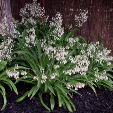 Commonly called Renga Renga or Rock Lily, is used widely as a ground-cover for dry shade and under trees. Forms large clumps of broad, medium-green, arching foliage. Graceful sprays of white star-shaped flowers from spring to mid-summer. Frost tender.